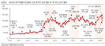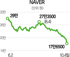 반면, 네이버는 자회사 네이버웹툰의 나스닥 상장으로 주가가 약세를 보이고 있습니다.